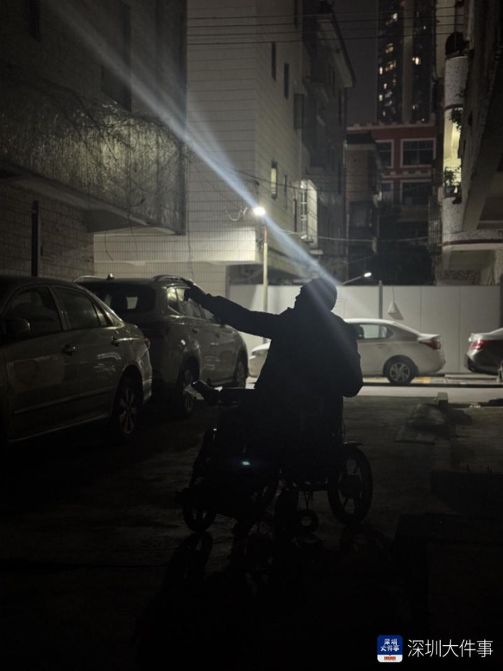 1月13日晚,南都记者前往江边新村走访。该村庄位于坪山社区与江岭社区交界处,与坪山老街相邻,周边商业街夜间照明充足,而村庄内部则光线昏暗、行人稀少。在可借助周边商铺广告牌光线照明的巷口,南都记者见到了乘坐轮椅的范先生。